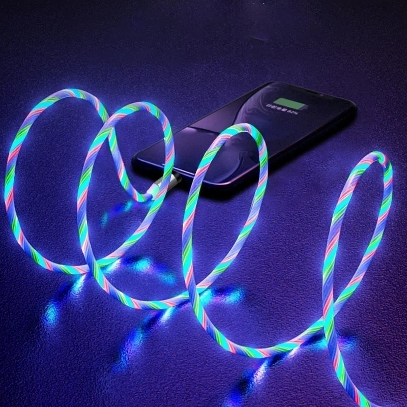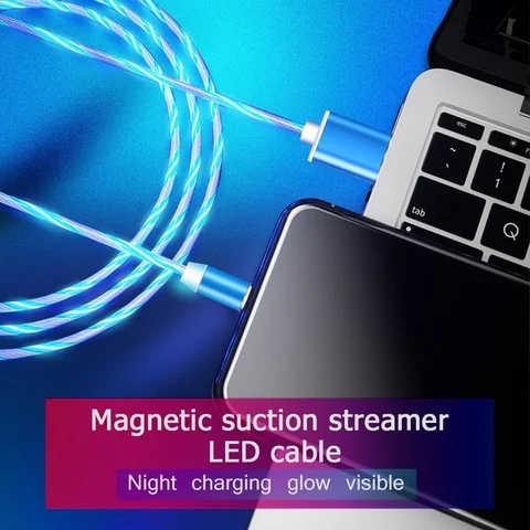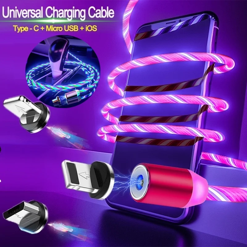LED Glow Flowing Magnetic USB Cable for IPhone Xs Max Magnet Micro USB Type C Cable for Samsung Galaxy S9 S8 Fast Charger
