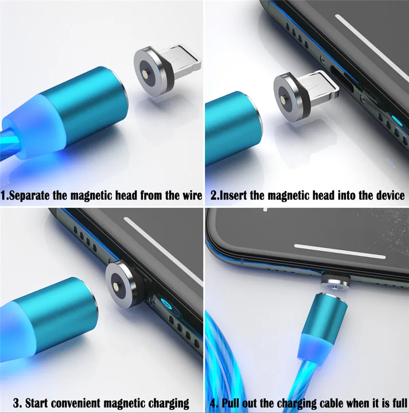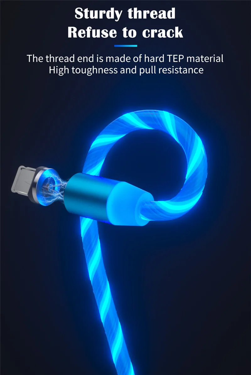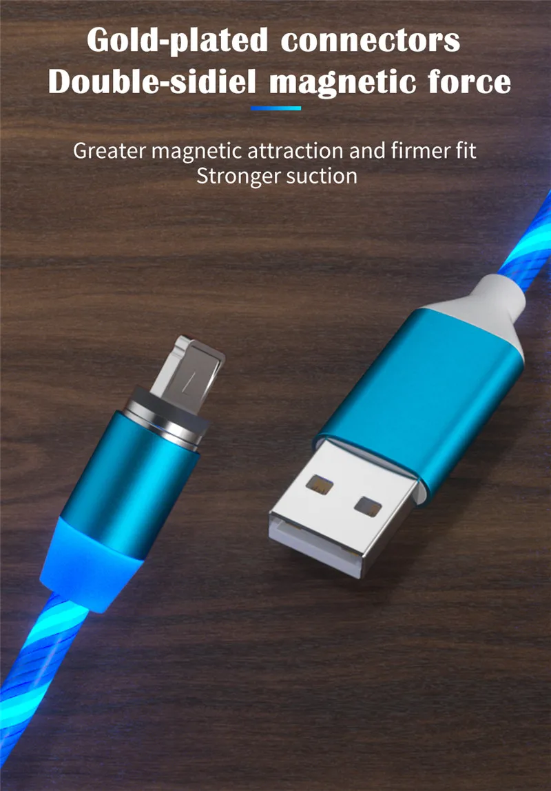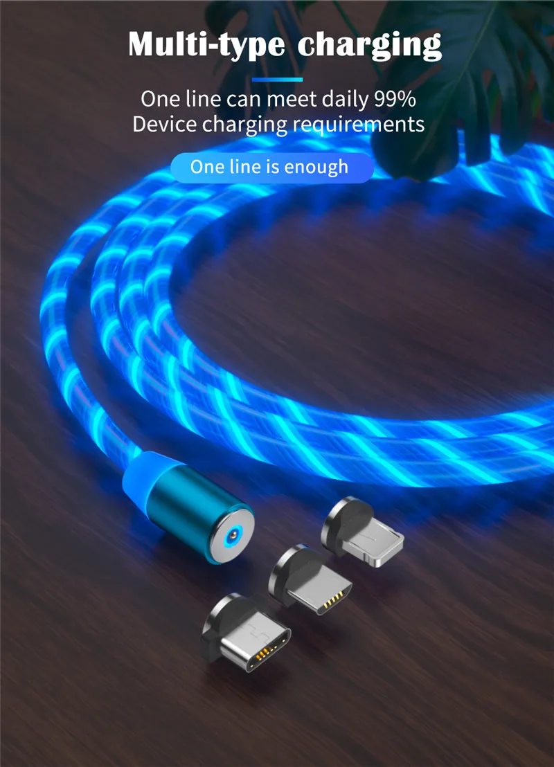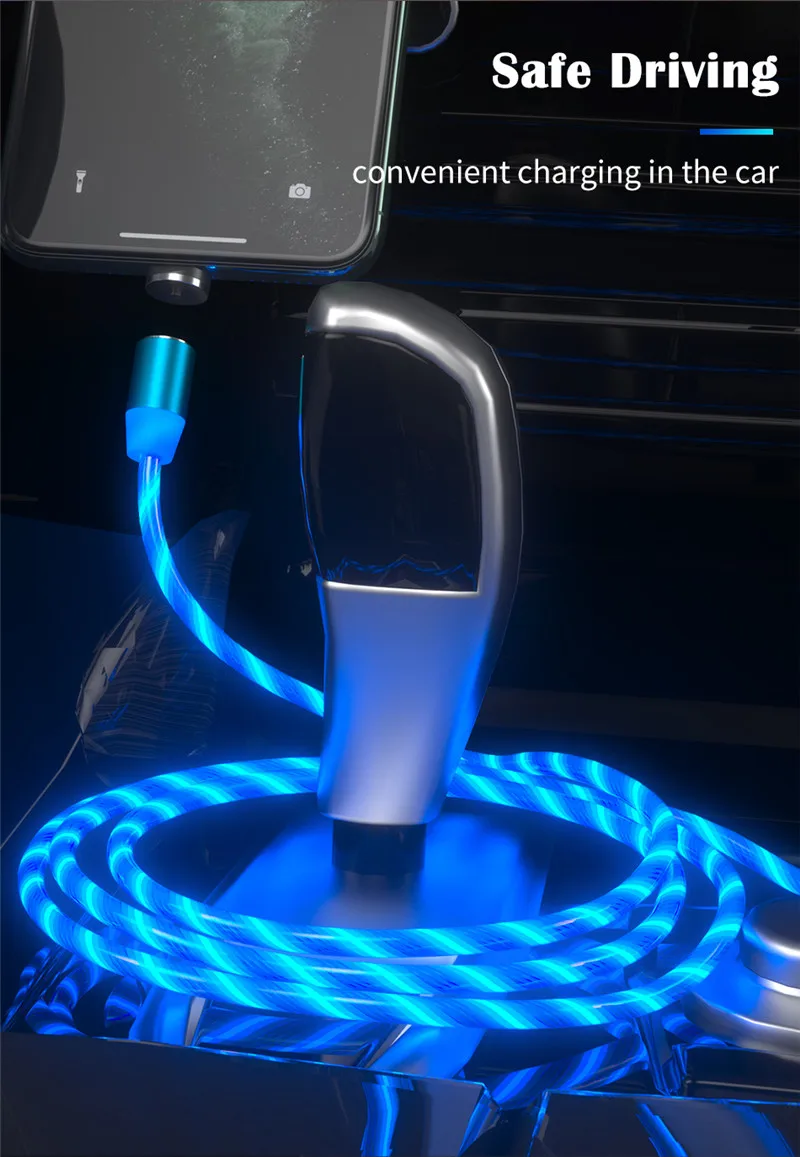 1.Visible Flowing LED Light ---- There will be a beautiful led light flowing along the magnetic cable when plugging it in and charging your device,which makes it a perfect decoration in the room, office or car,give you a different charging experience.
