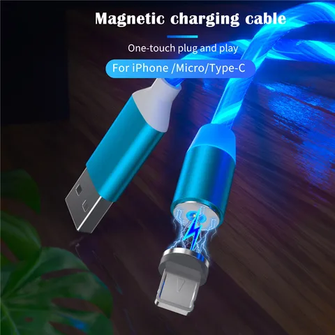 • In1 Magnetic Luminous Lighting Charging Cable Mobile Phone Cable USB Type C Cable For Xiaomi Samsung LED Micro USB C Wires
