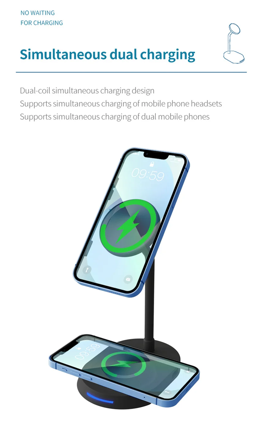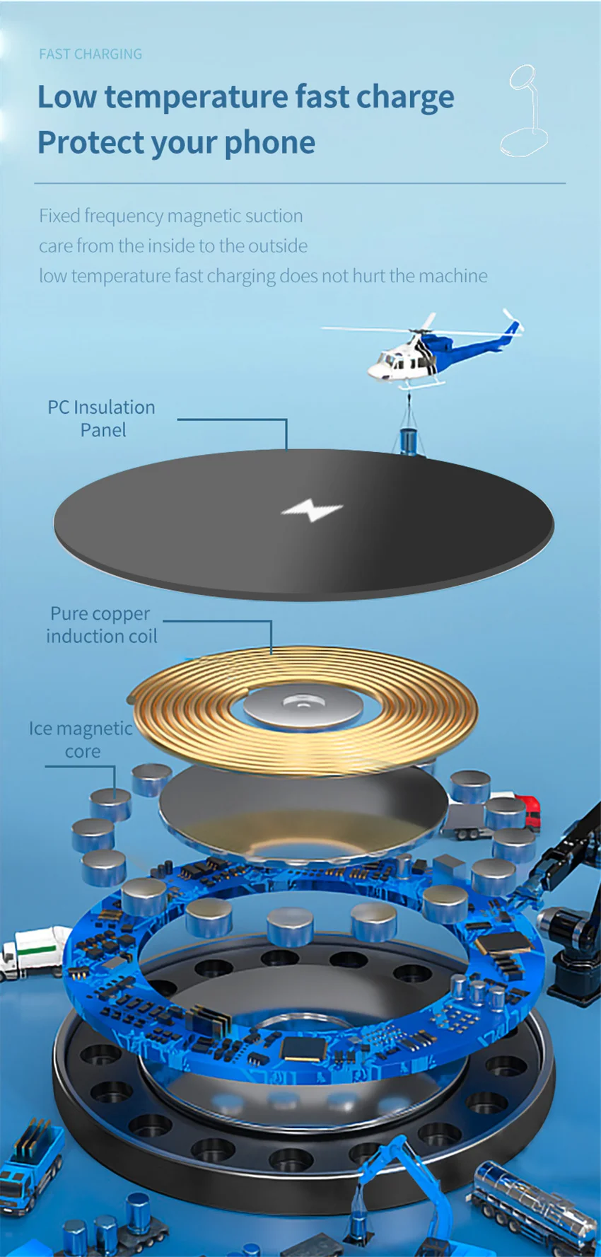 【Upgraded Nine Security Protections】Built-in intelligent chip, safe and quick cha ">Double magnetic ring helps reduce leakage flux and ensures automatic and precise alignment between a phone and this wireless charger