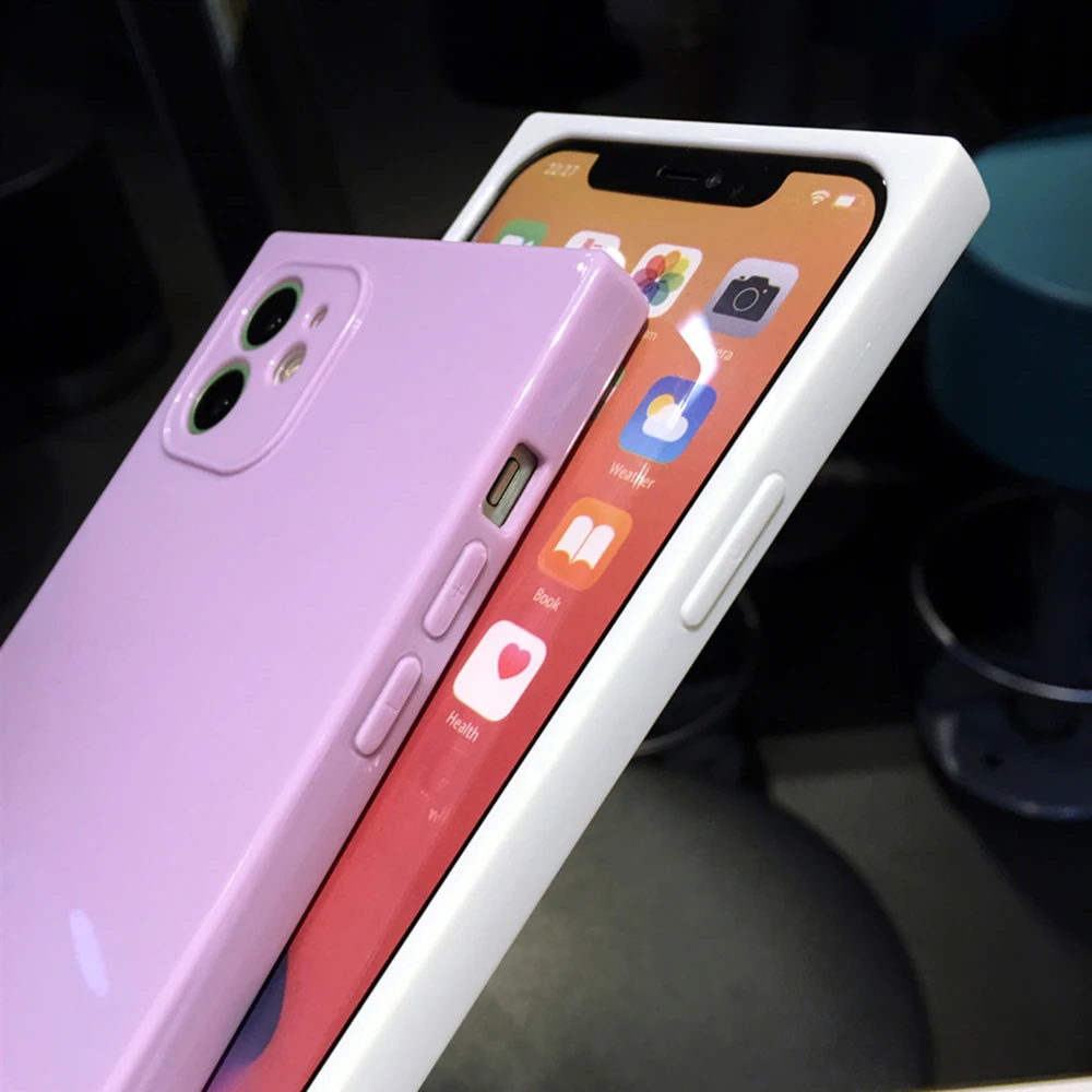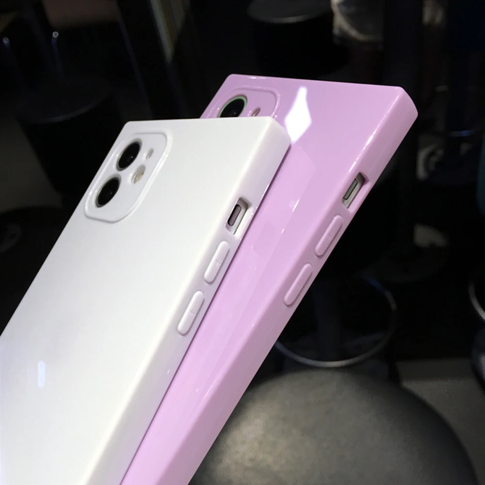 Case For iPhone 12 11 Pro 13Pro Max X XR XS Max 7 8 Plus SE 2020 13 Mini Luxury Square Design Candy Colors Soft TPU Cover