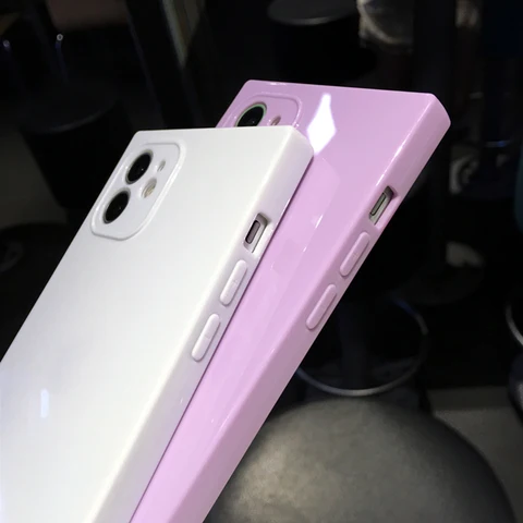 • Case For iPhone 12 11 Pro 13Pro Max X XR XS Max 7 8 Plus SE 2020 13 Mini Luxury Square Design Candy Colors Soft TPU Cover