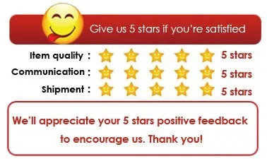 1. If you're satisfied with our products and service, Please spend few minutes to write us a positive5 starfeedback ,thanks in advance for your support .