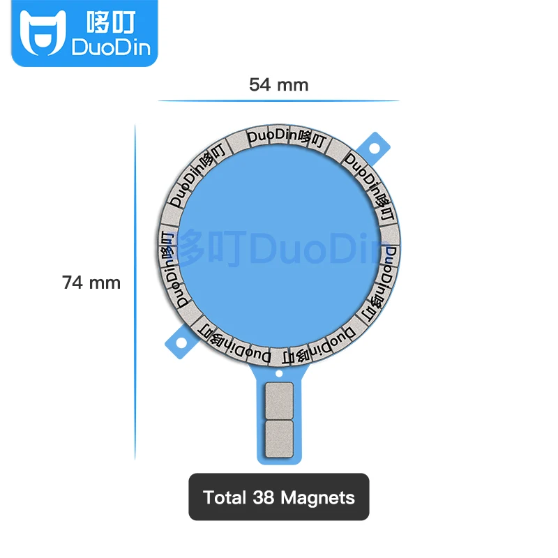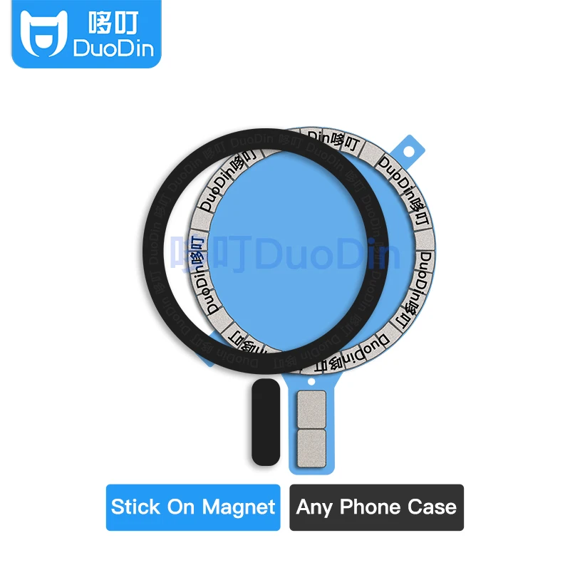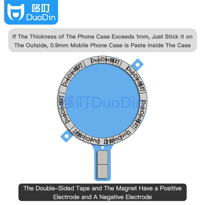 4. Both sides of the magnet are glued. Do not tear off the blue protective film. You can change the phone case for testing and use at will