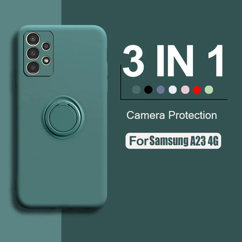 Original Square Silicon Case For Samsung Galaxy A23 4G Camera Protective Back Cover on Samsung A23 a 23 Magnetic Ring Stand Case