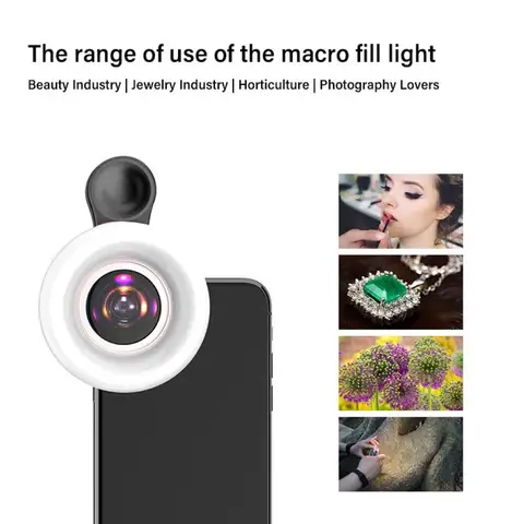 Universal Selfie LED Ring Flash Light Portable Mobile Phone 50 LEDS Selfie Lamp Luminous Ring Clip 15X Photography Phone Macro Lens Makeup Beauty Instagram