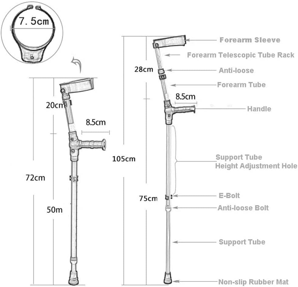 Muleta de borracha antiderrapante para adultos: a base é feita de borracha resistente e antiderrapante para aumentar a traçã e a estabilidade, adequada para os tipos de superfícies.
