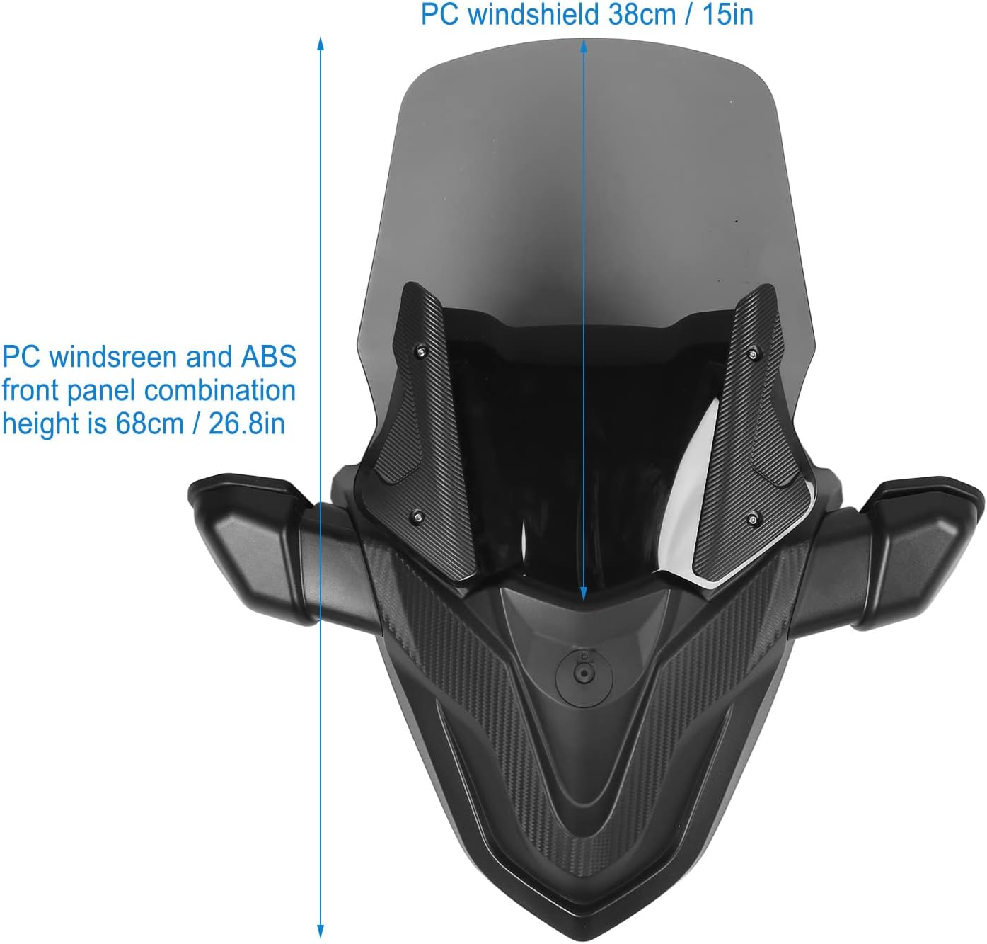 Alta Estabilidade: para-brisa é fixado com parafusos de 4 furos, mais estável. Para-brisa de policarbonato 38 cm, a altura da combinaçã do painel frontal ABS e da estrutura é de 68 cm.