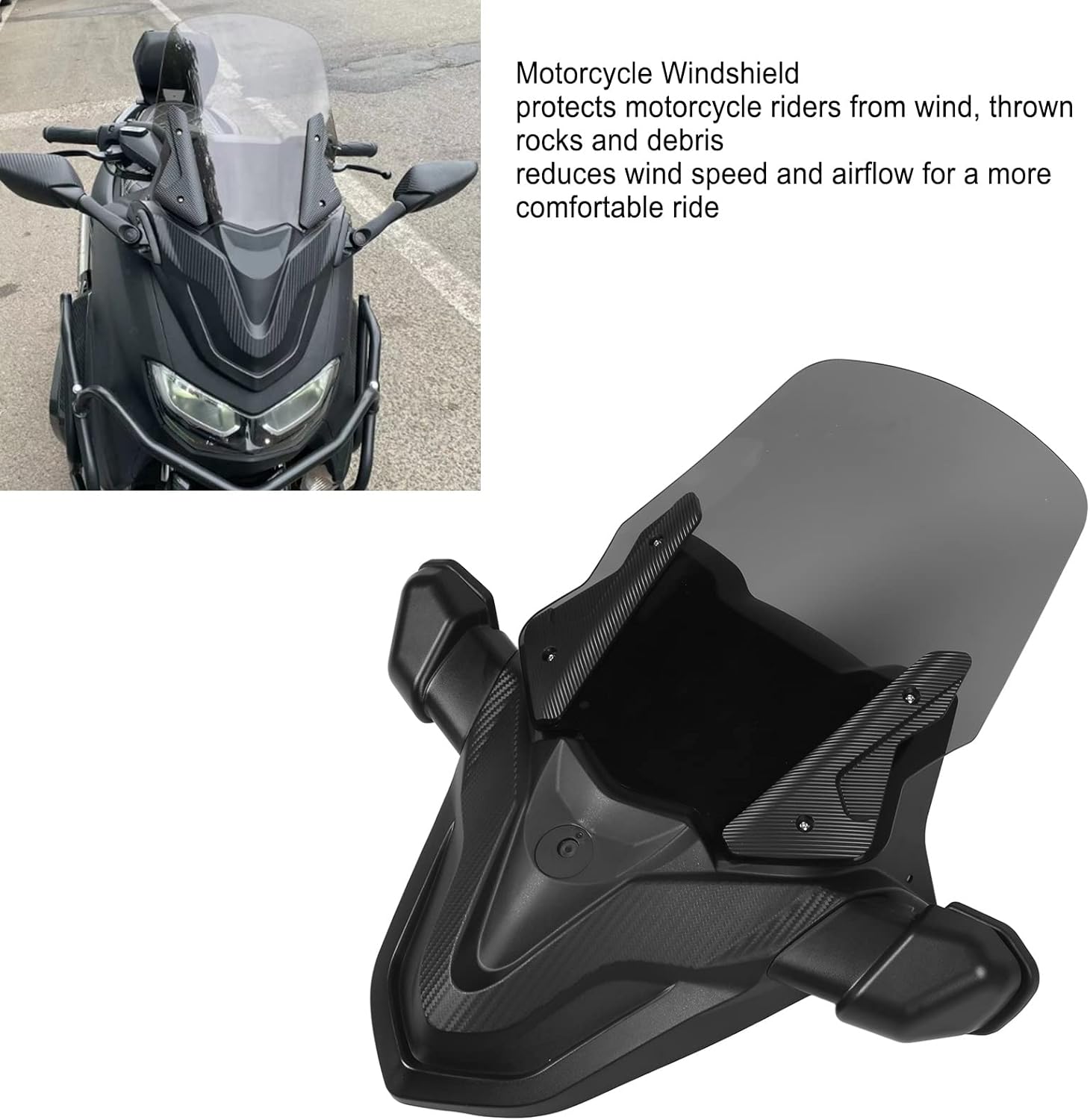 Reduz fluxo de ar: para-brisas da motocicleta ajuda a desviar mais vento, reduz a resistência do corpo, melhorando assim conforto do motociclista.
