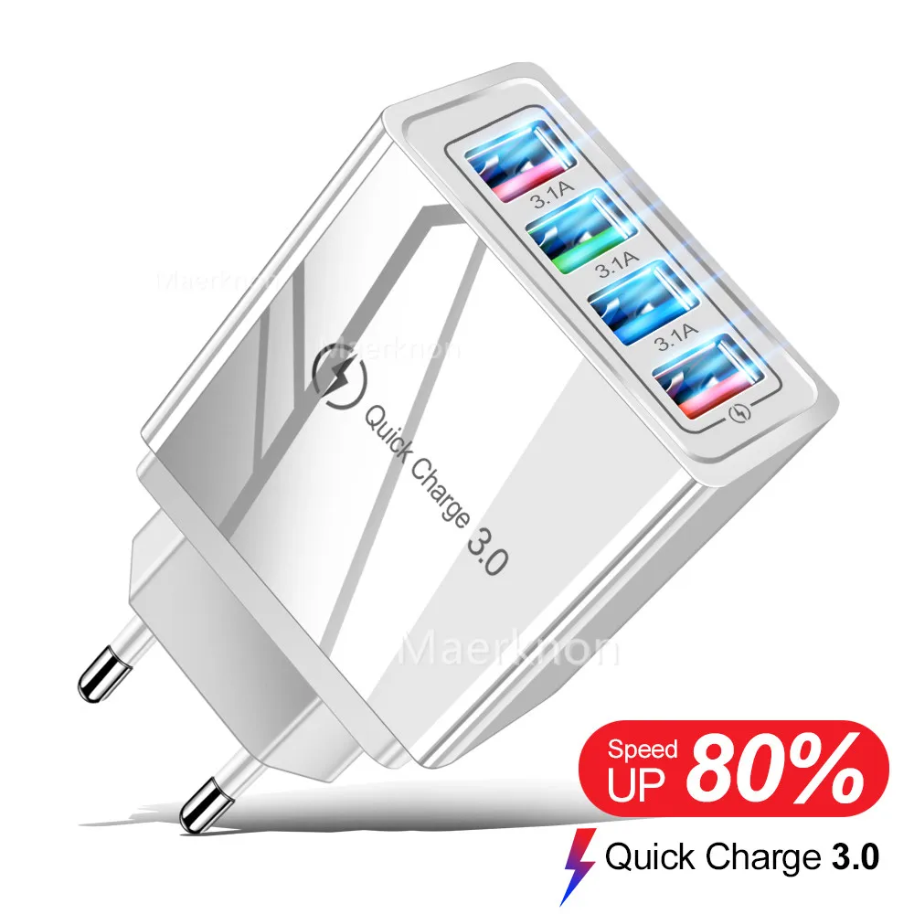 USB Charger Quick Charge 3.0 4 ports Phone Adapter For Huawei iPhone 12 xiaomi Tablet Portable Wall Mobile Charger Fast Charger
