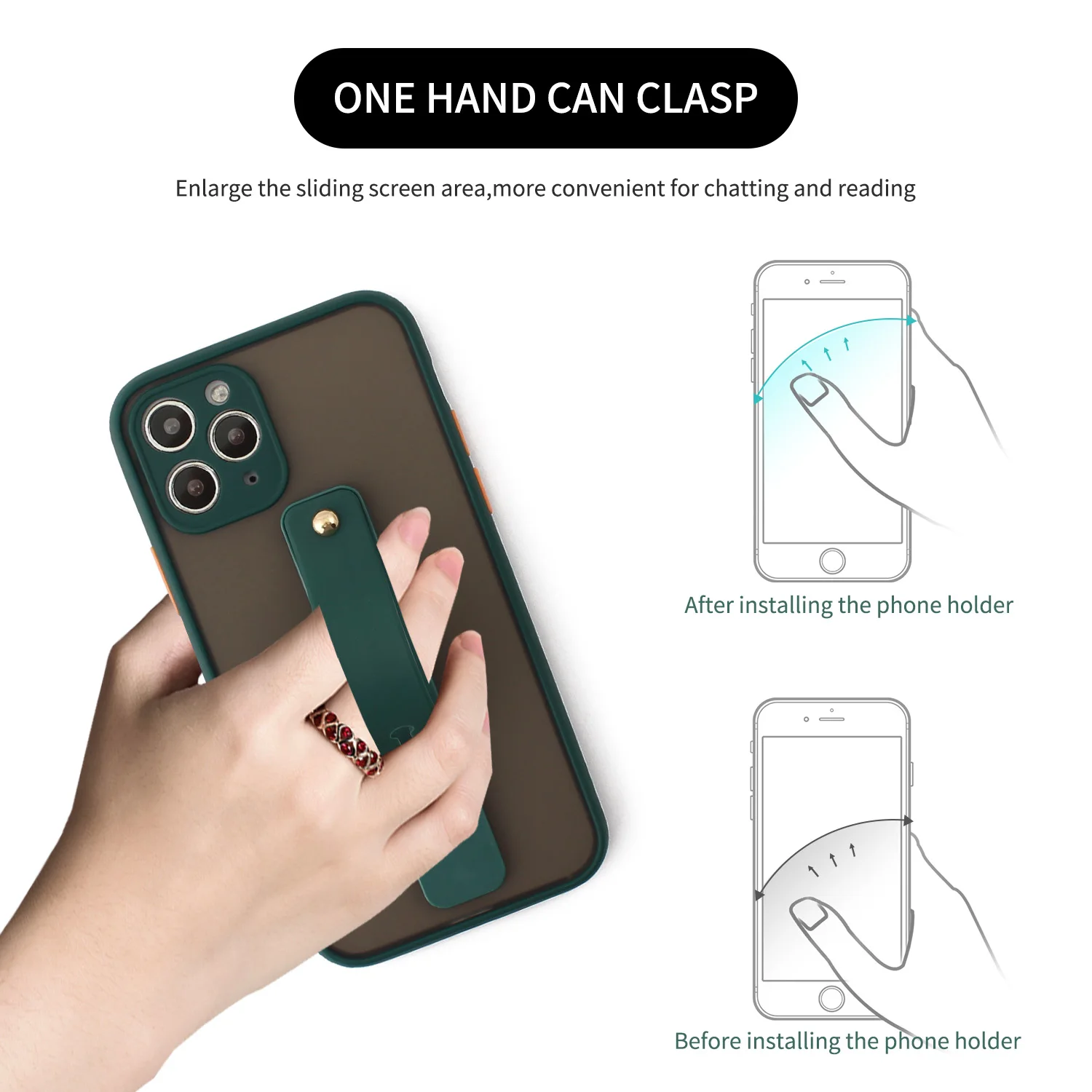 2. Hand band can stick on anywhere on the case or phone ,