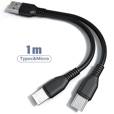 FONKEN 2 in 1 Micro USB Cable Type C Charging Cable 0.25m Short Mobile Phone Cable 2 USB Splitter Cable Microusb Fast Charge