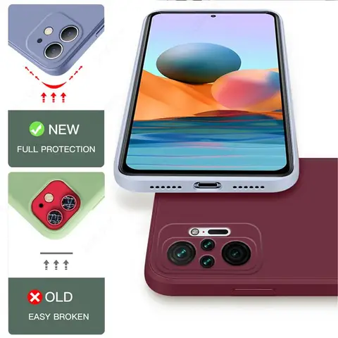 • Square Liquid Silicone Case For Redmi Note 10 4G 10s 10 Redmi Note 11 Pro Mi 11 Lite 5G 11T Poco M4 Pro K40S K50 Pro