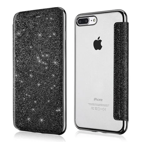 Luxury Glitter Leather Flip Wallet Case For iPhone 13 12 11 Pro XS Max XR X 7 8 Plus 6s Plus SE2020 Clear Bling Back TPU Case