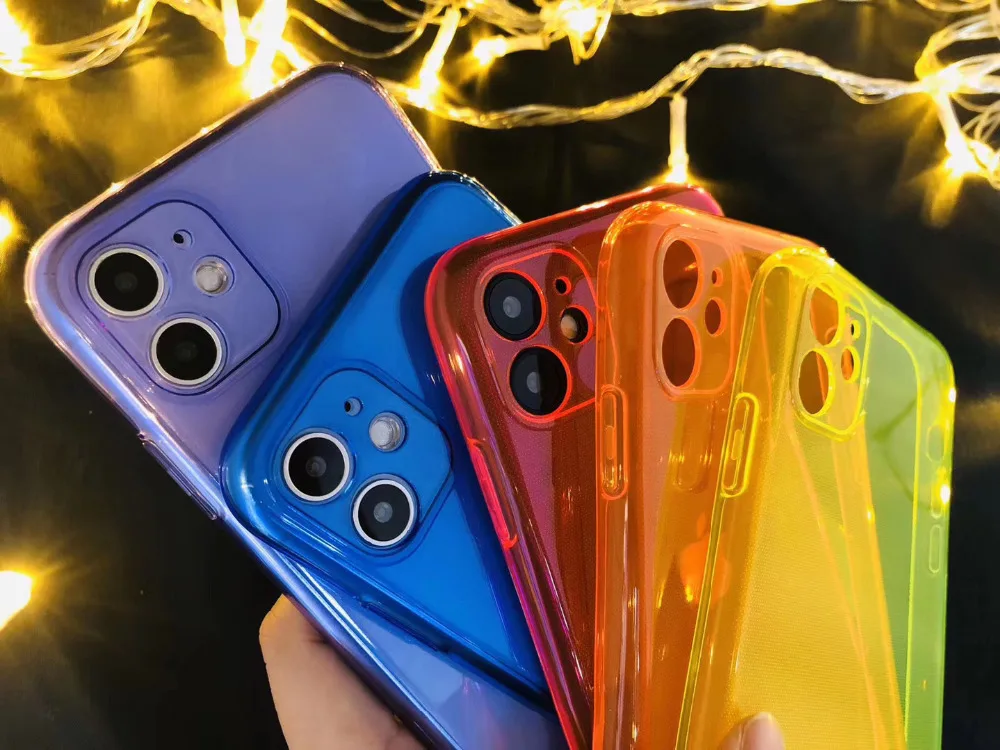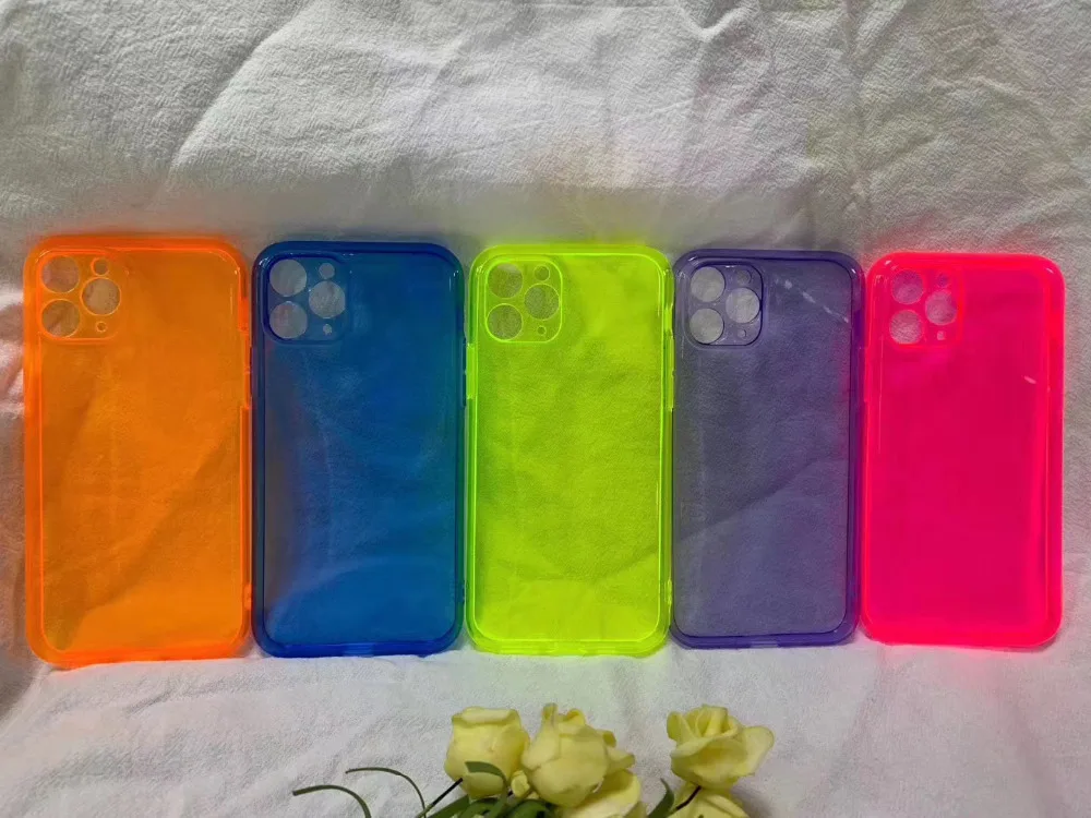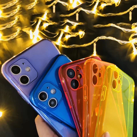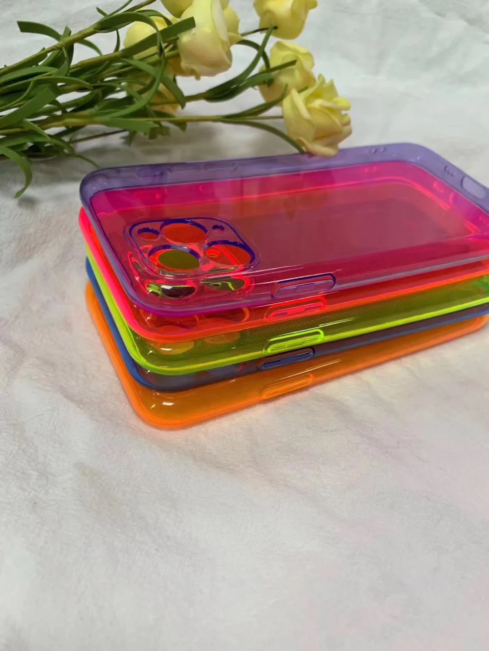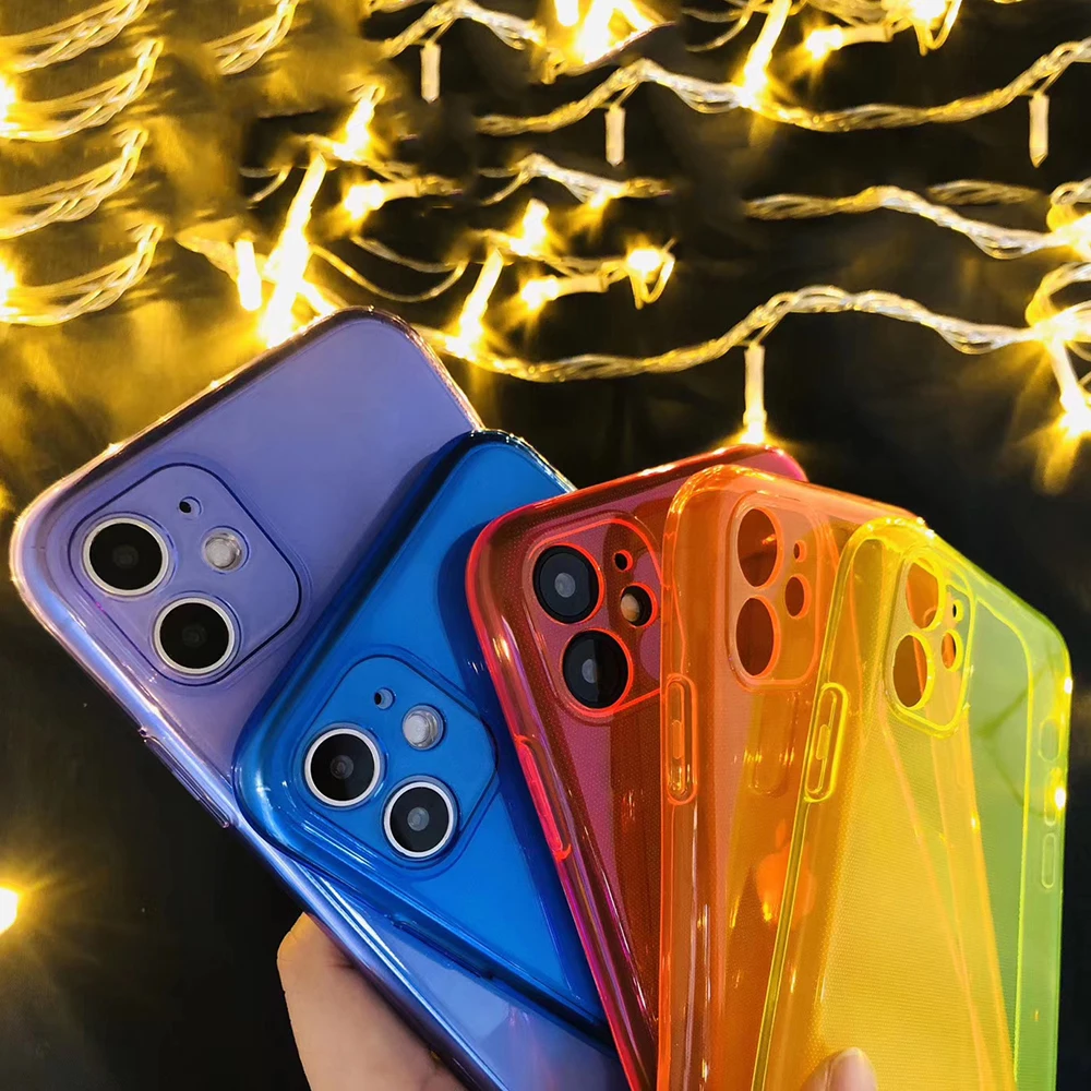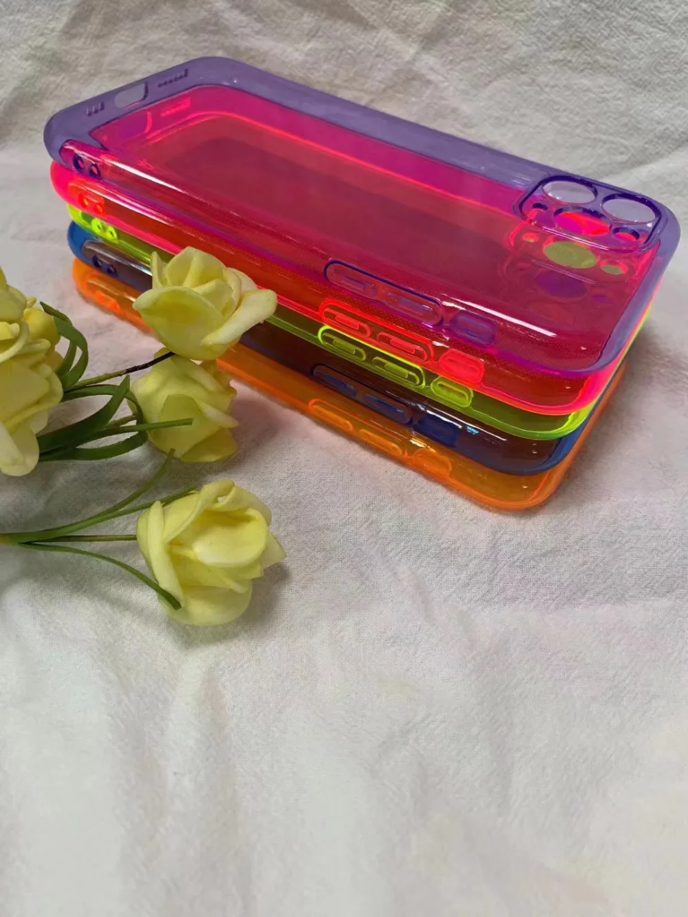 Fluorescent Color Phone Case For iphone 11 12 13 Pro Max XR X XS Max 8 7 Plus SE 2020 Cover Luxury Cute Clear Soft Cases