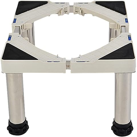 Material: Este de base para máquina de lavar é de construçã resistente, adotando tubo de aç inoxidável e painel de polipropileno resistente, 4 pernas de aç inoxidável, com forte capacidade de carga. Carga de 150 kg.