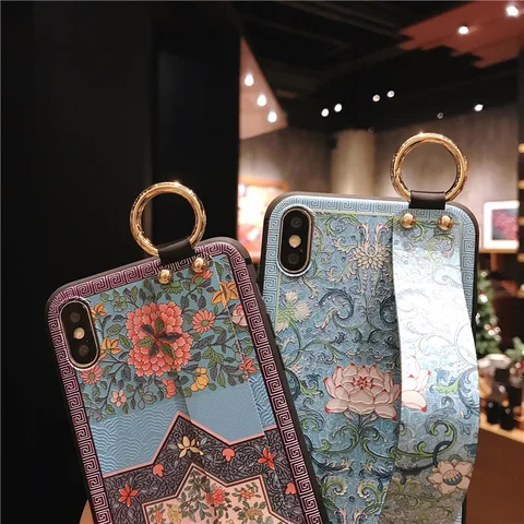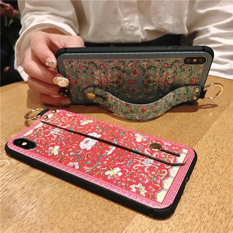 flowers Wirst Strap Soft TPU Case For iphone 7 8 6S plus Case For iphone 12 Mini 11 13 Pro X XS MAX XR phone Holder Case
