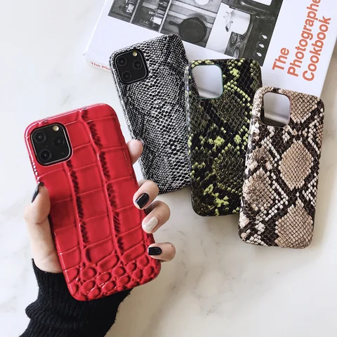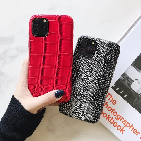Texture soft silicone phone case For iphone 12 Mini 11 13 pro XS MAX X XR 7 8 6 plus Snake Skin Pu Leather cover Funda