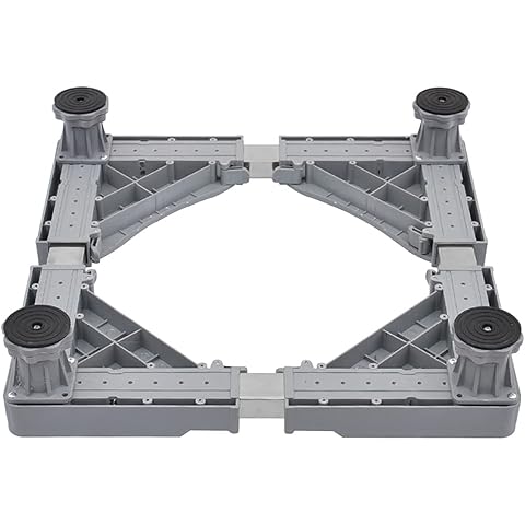 ajustável e amp; Móvel: A base pode ser esticada para ajustar, comprimento/largura: 45-65cm; altura: 20/25/30/35cm.Nosso para máquina de lavar tem 4 rodas giratórias de borracha com trava.Fique firme e também é fácil de mover com rodas giratórias, que é conveniente para limpeza e retrabalho.