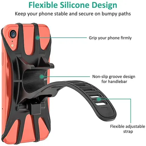 Made of premium silicone material, the flexible phone holder clip absorbs and prevents scratches on the phone\\\'s. The elastic silicone bands firmly hold your phone to the bike, even on a bumpy road.