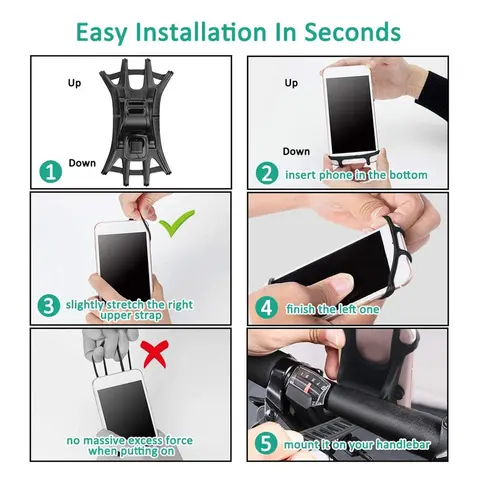 1.Durable and Secure: Made of premium silicone material, the flexible phone holder clip absorbs and prevents scratches on the phone\\\'s . The elastic silicone bands firmly hold your phone to the bike, even on a bumpy road.