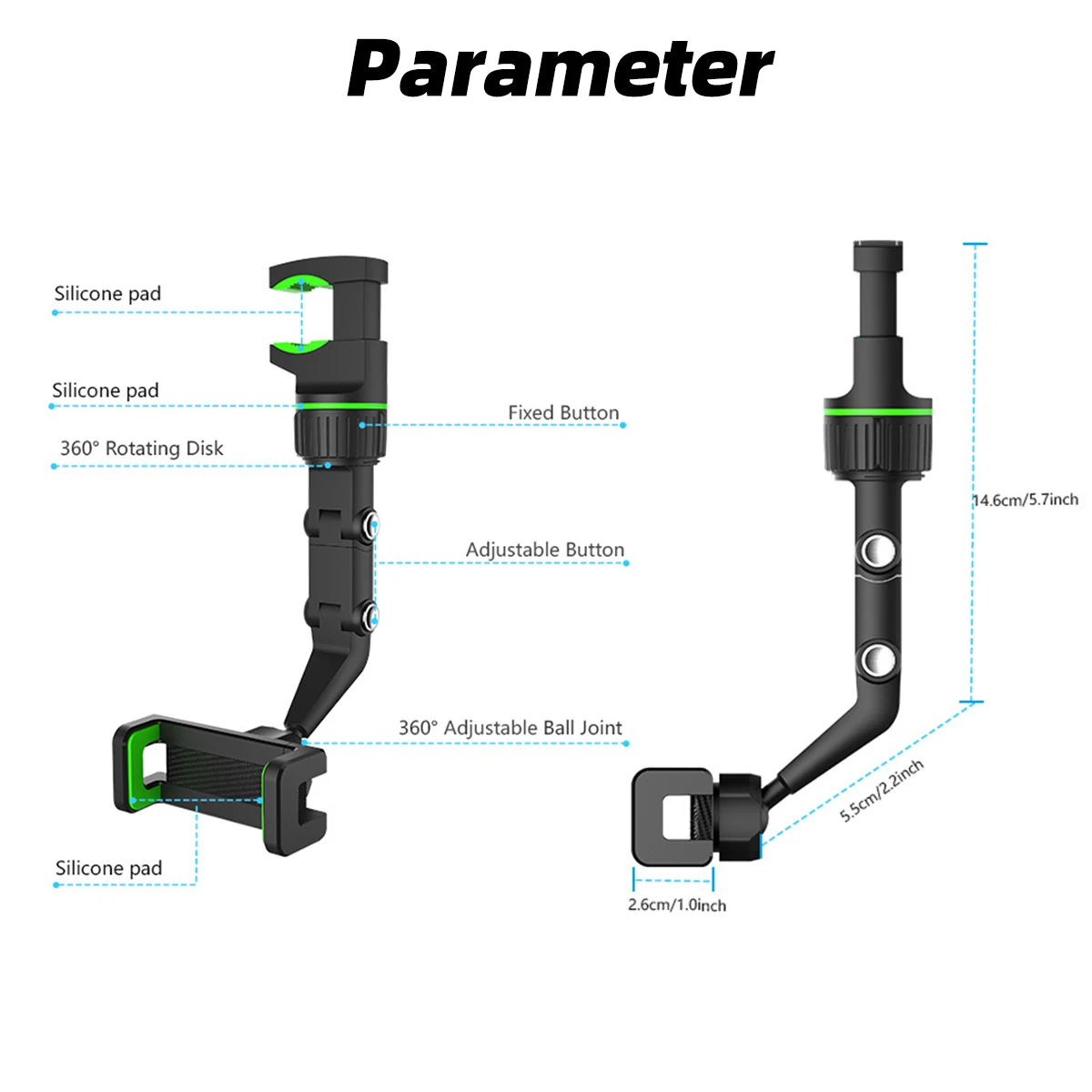 5. You can clamp the phone holder in any position. In addition to the rearview mirror, you can also install it in the car seat, kitchen, bedroom, to facilitate your study, work and pass the boring time.