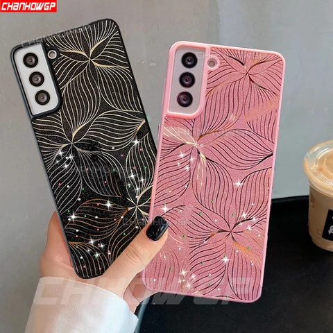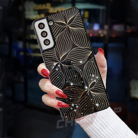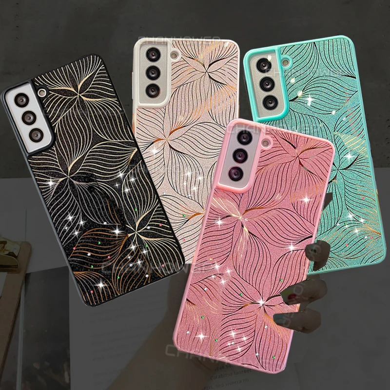 Bling Laser Flower Case For Samsung Galaxy S21 S20 Note 20 A12 A02S A32 A52 A72 A21S A51 A71 A70 A50 A30 s M12 TPU Silicon Cover