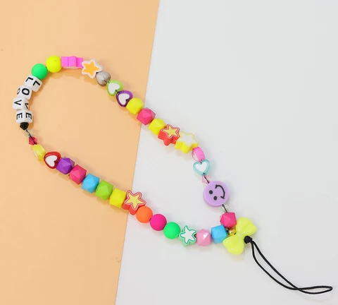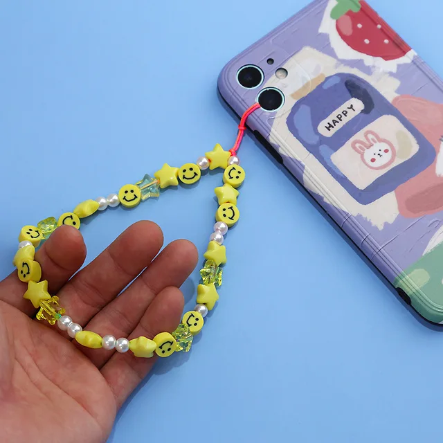 • Mobile Phone Chain Straps Charm Color Acrylic Imitation Pearl Pendant Phone Anti-Lost Anti-Drop Lanyard Ladies Jewelry