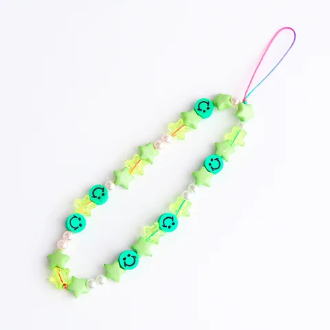 Material: imitation pearl + acrylic beads + soft pottery smiling face
