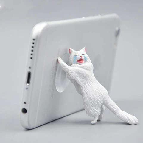Cute Cat Phone Holder Tablets Desk Sucker Support Resin Mobile Phone Stand Holder Sucker Design Animal Holder For Smartphone