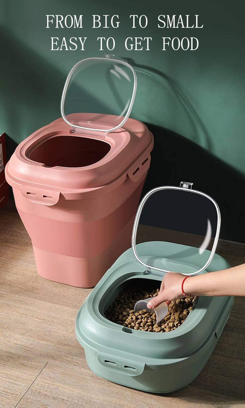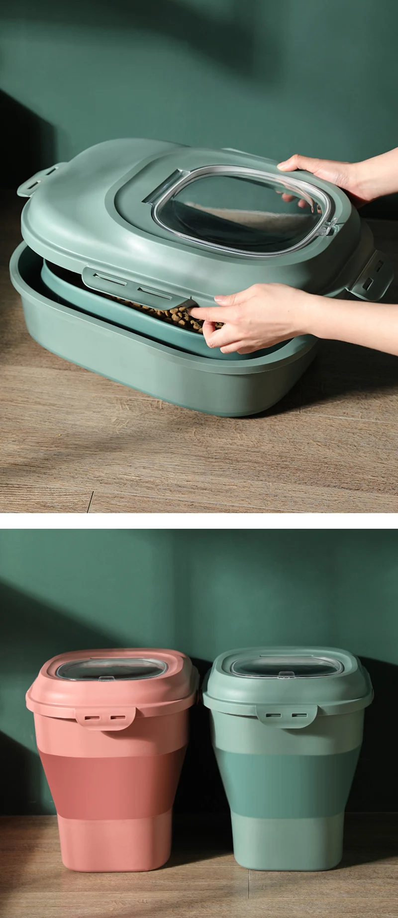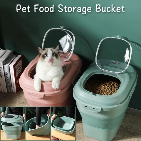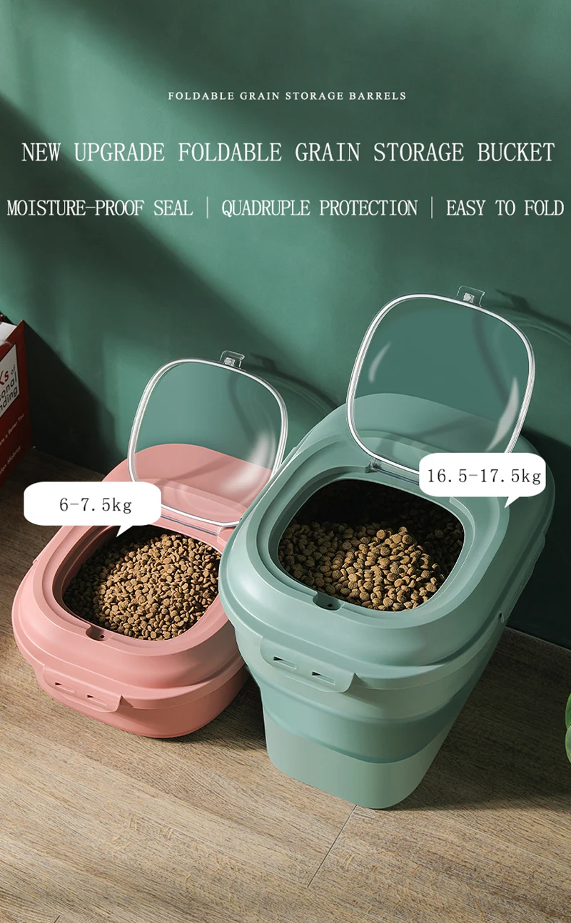 Foldable Food Storage Bucket Large-capacity Plastic Cat Food Dog Food Moisture-proof Anti-oxidation Sealed Fresh-keeping Box
