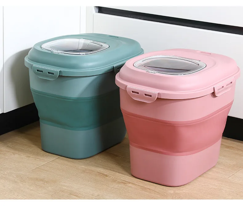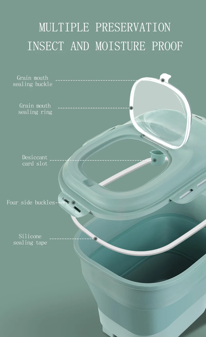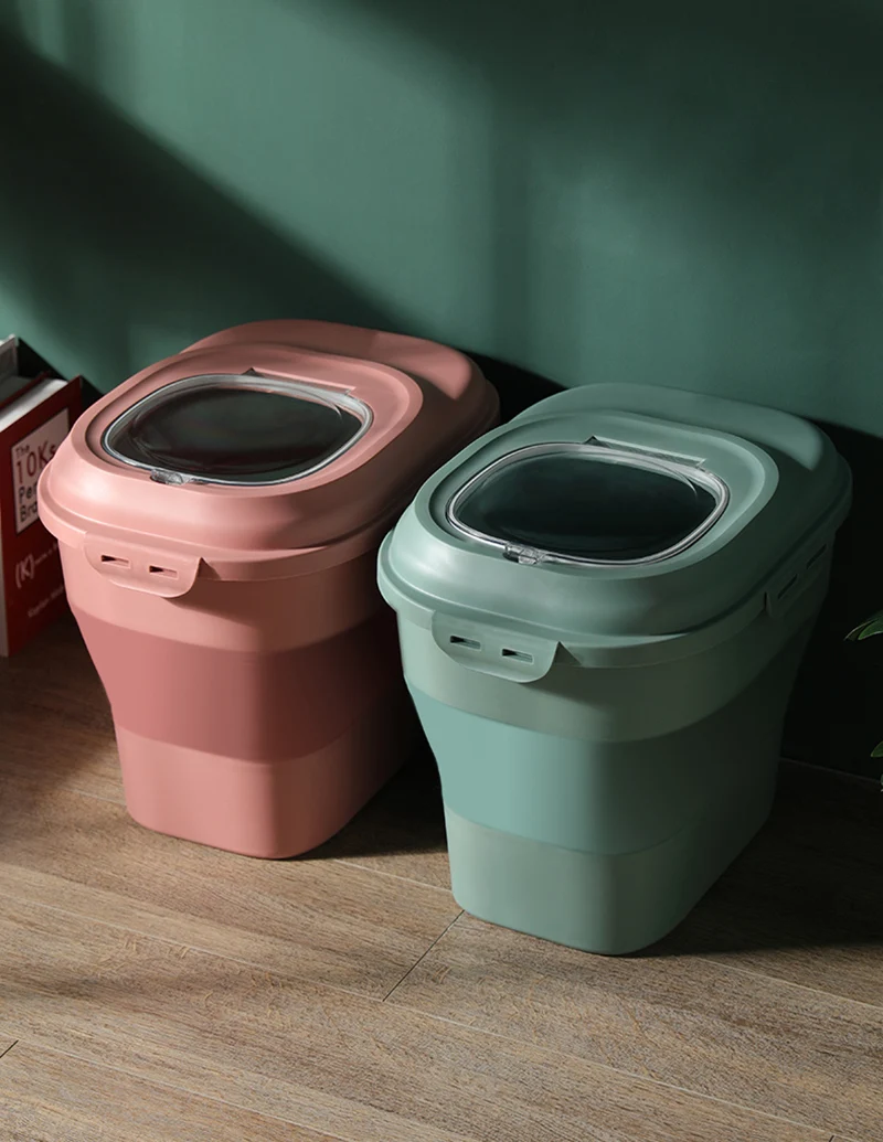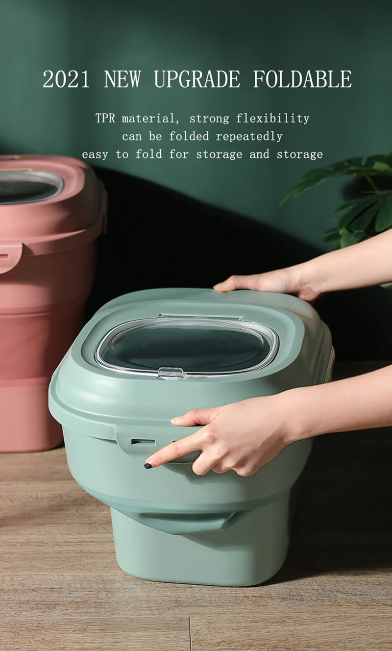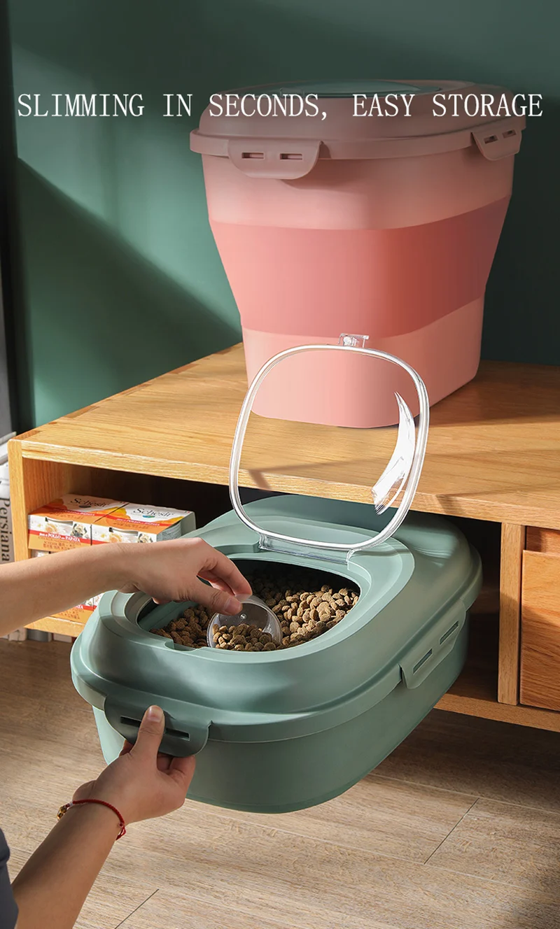 Foldable Food Storage Bucket Large-capacity Plastic Cat Food Dog Food Moisture-proof Anti-oxidation Sealed Fresh-keeping Box