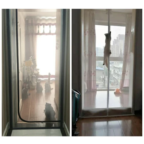 • Pet Escape Door Curtains No Nail Partition Insect Mosquito Partition Net Plastic Curtain for Door Shielding Mesh Fly Net