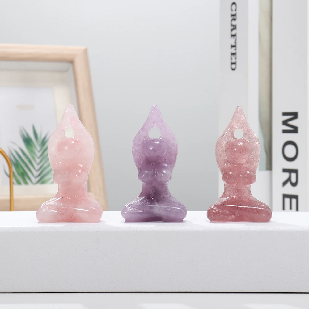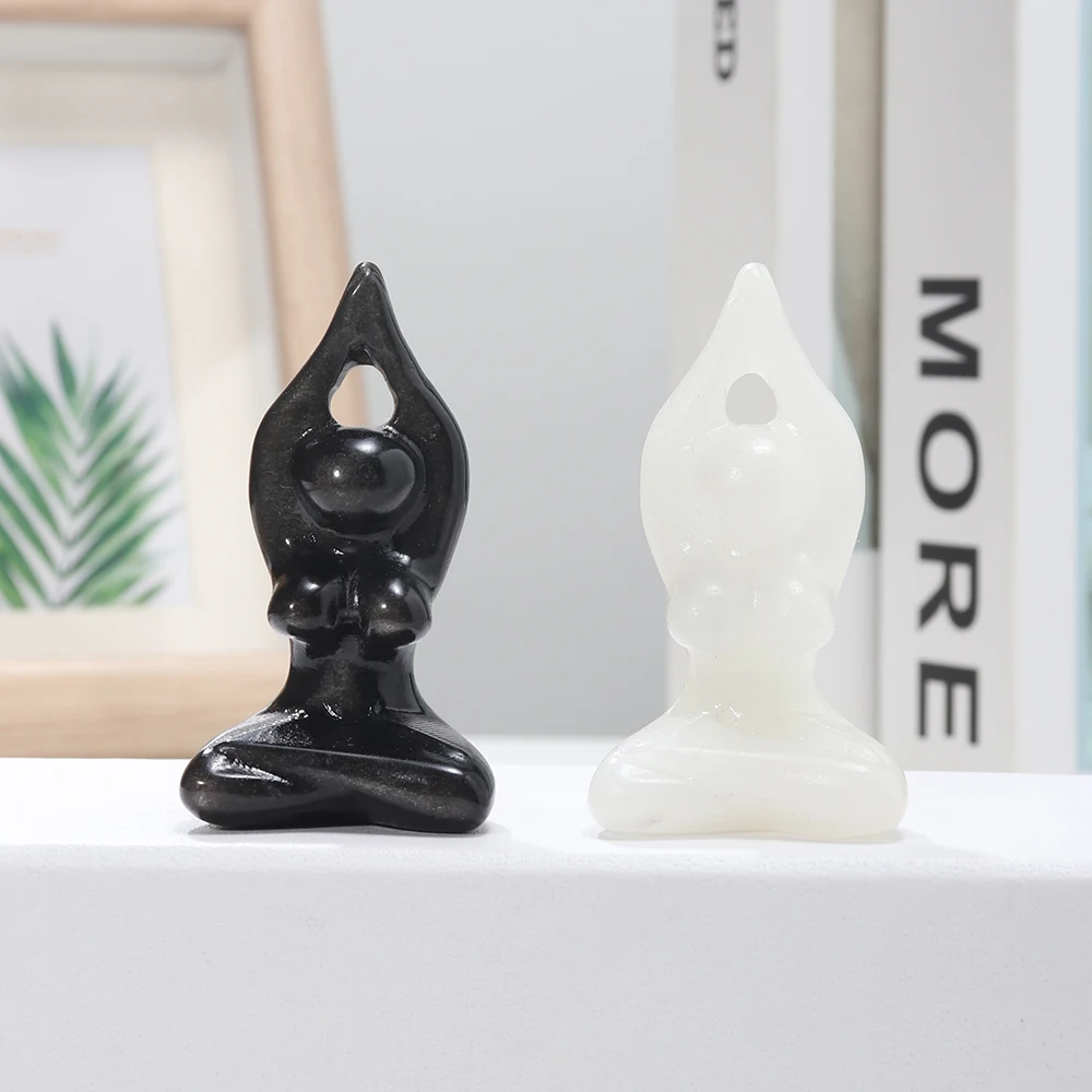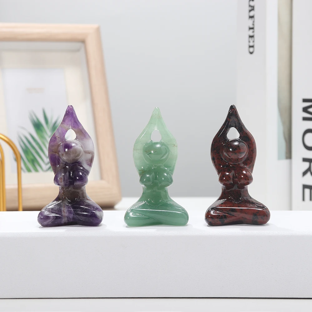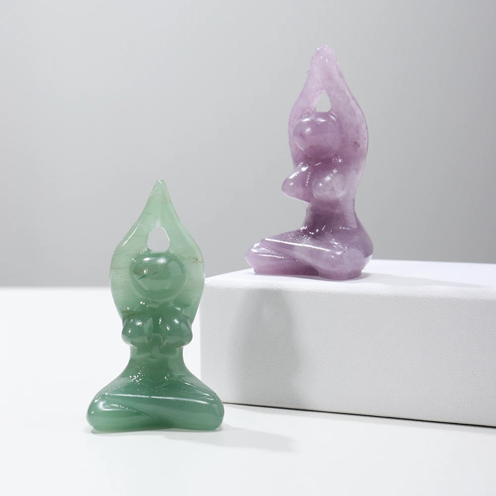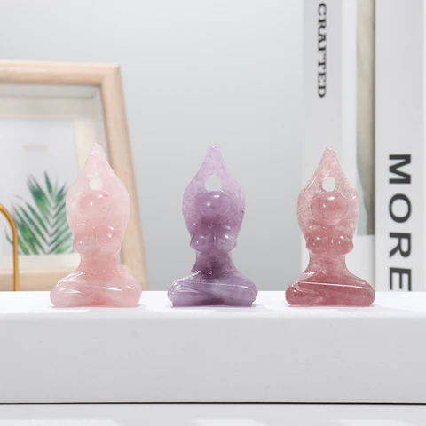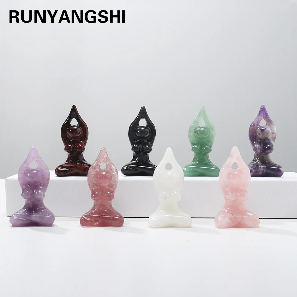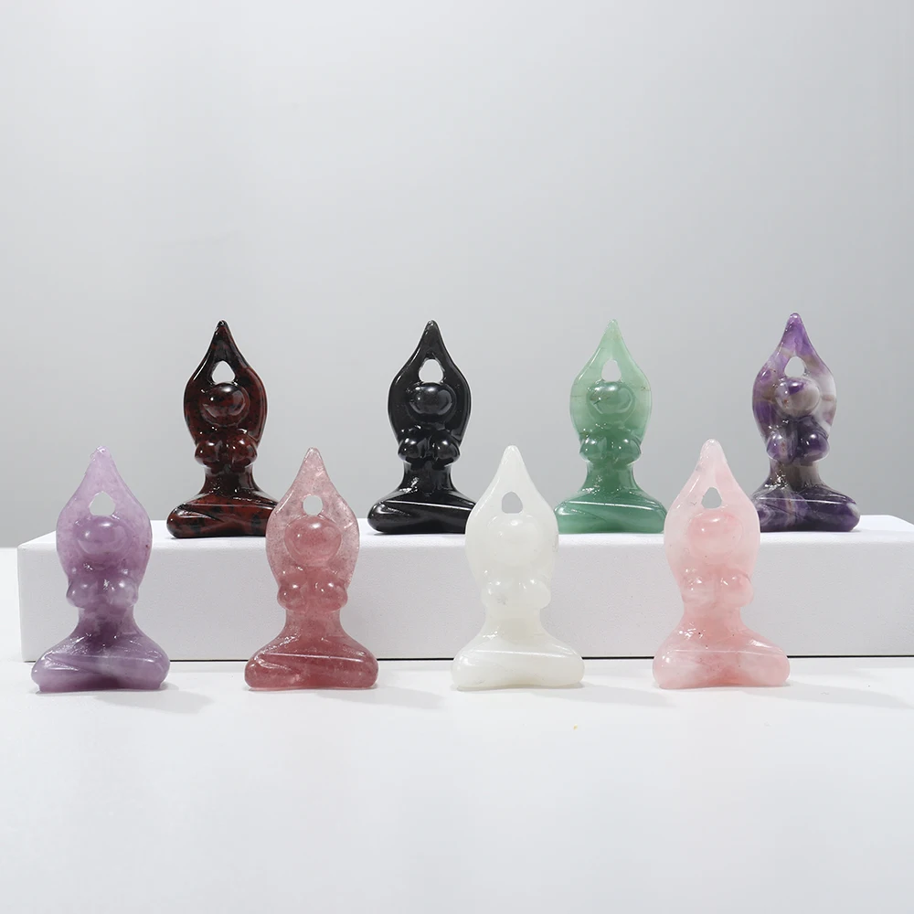 • Model Statue Natural Crystal Yoga Girl Naked Female Model Figurine Amethyst Quartz Crystal Engraving Gift