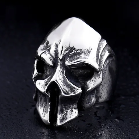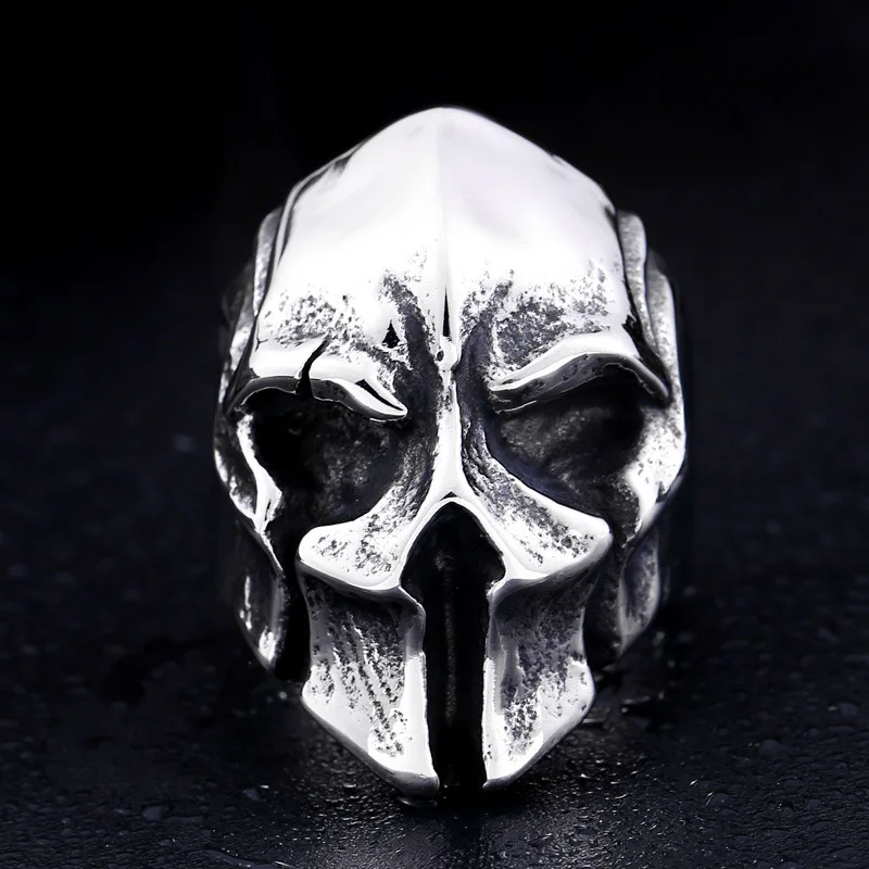 • Exaggerated Warrior Skull Mask Ring Fashion Men Domineering Ring Death Demon Retro Ring Jewelry Gift Resizable