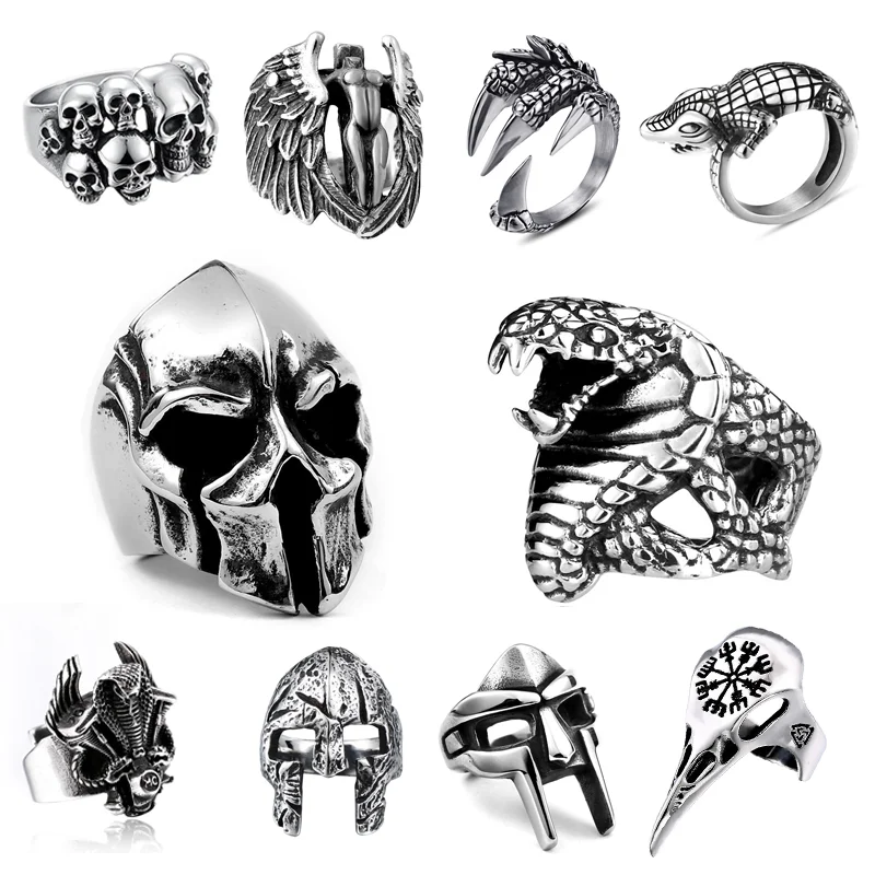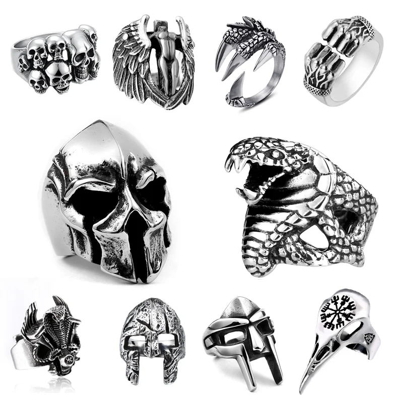 Exaggerated Warrior Skull Mask Ring Fashion Men Domineering Ring Death Demon Retro Ring Jewelry Gift Resizable