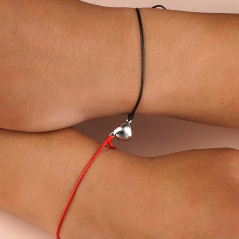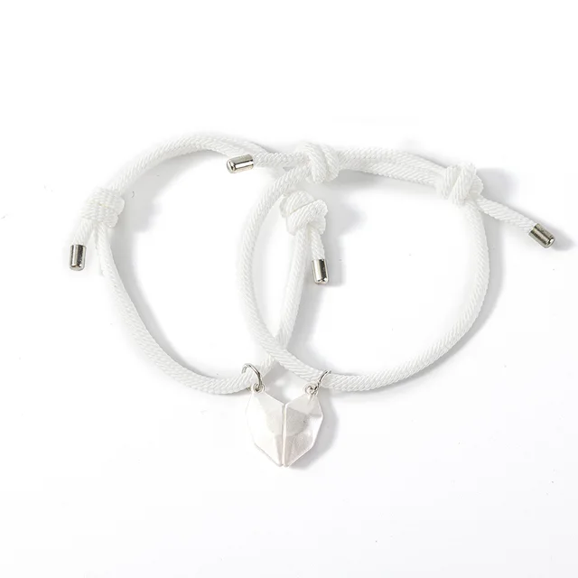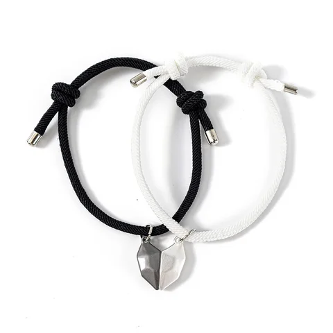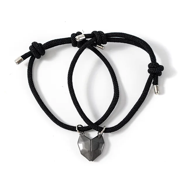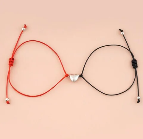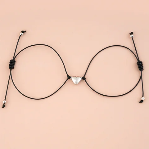 2*Heart-shaped alloy magnet attracts woven couple bracelet