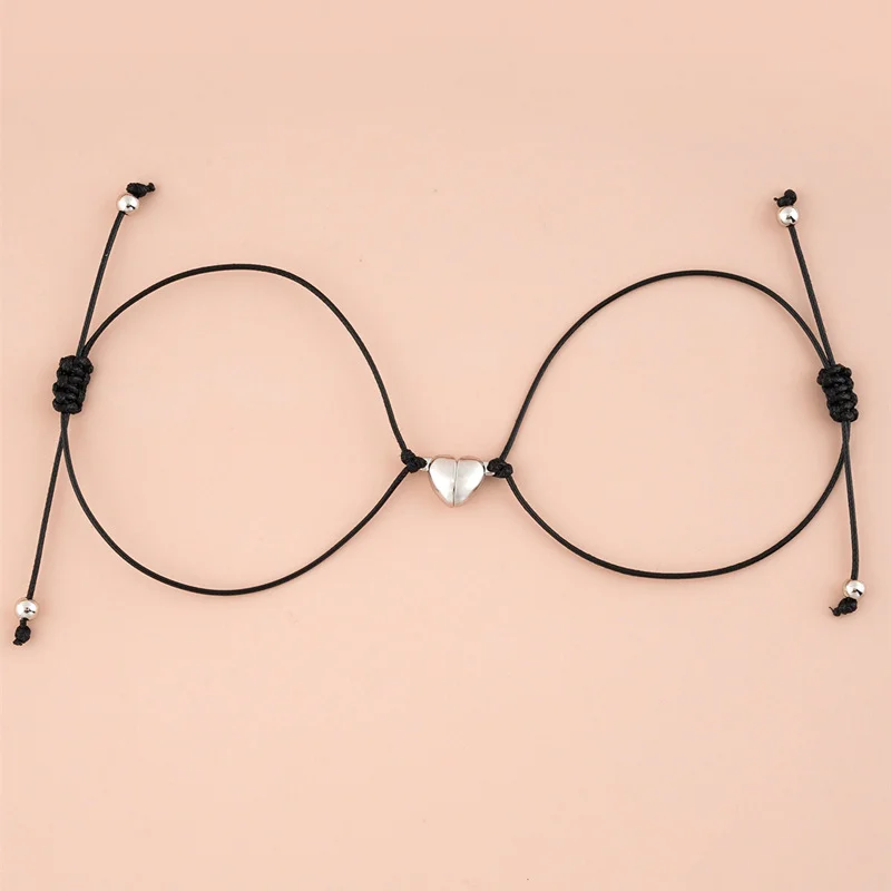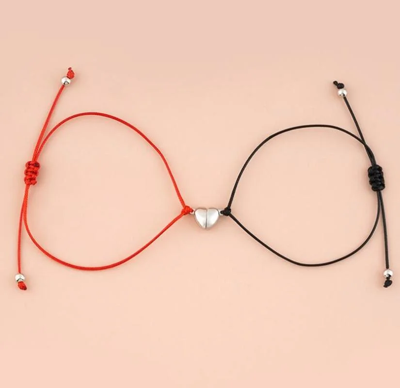 • Magnet Heart Alloy Attracts Charm Bracelet braided Rope Couple Bracelets Adjustable Women Girls Friendship Bracelet Gift