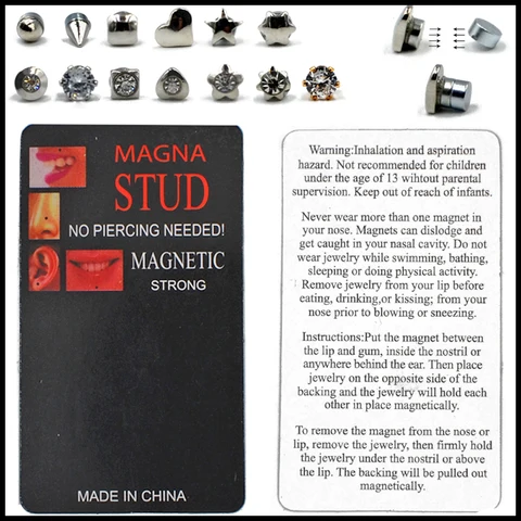 • Designs Fake Cheater Piercing Non Pierced Magnet Ear Lip Labret Nose Ring Stud Jewelry Magnetic Tunnel Plugs Earring