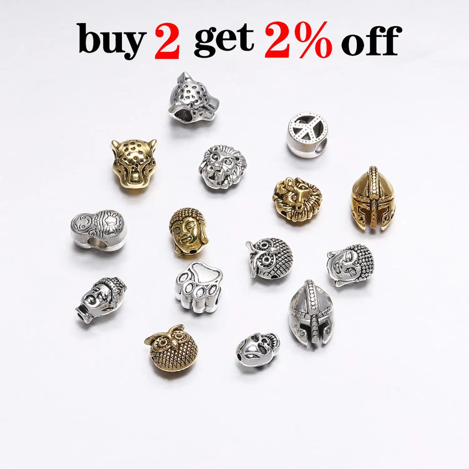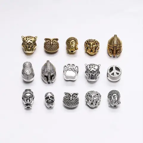 10pcs/lot Gold /Silver color Charm Beads Buddha Sparta leopard Lion Heads Spacer Beads For Jewelry Finding Making DIY Handmade Bracelet