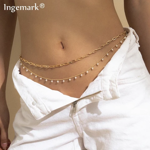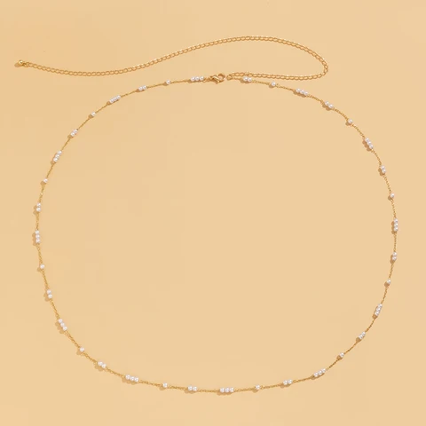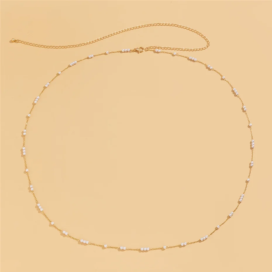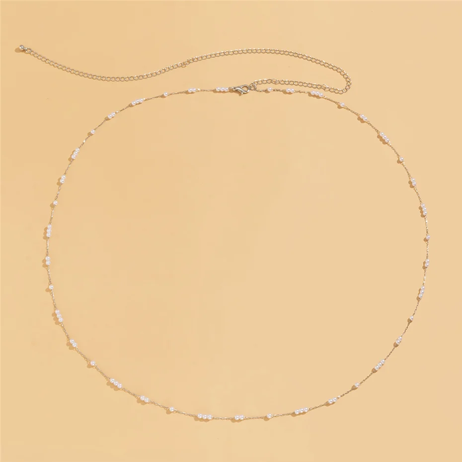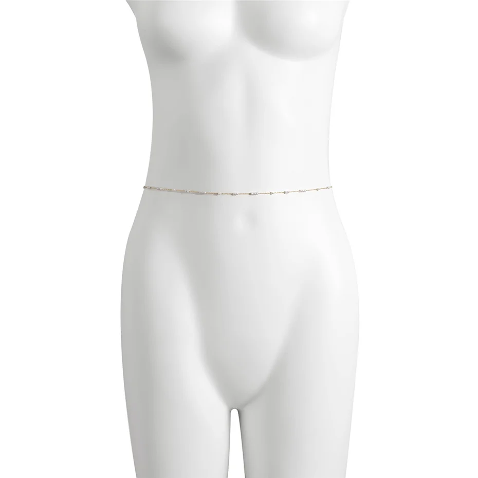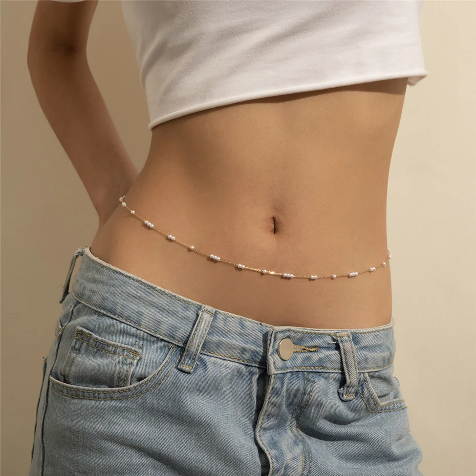 Kpop Bohemia Pearl Thin Belt Waist Beads Chain Jeans Delicate Body Jewelry for Women Harness Fashion Natural Decorations