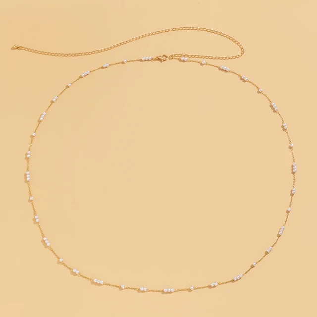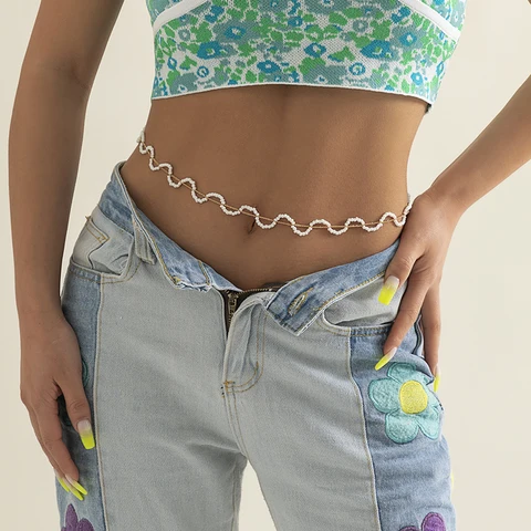 • Kpop Bohemia Pearl Thin Belt Waist Beads Chain Jeans Delicate Body Jewelry for Women Harness Fashion Natural Decorations