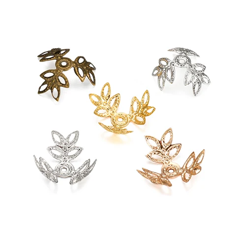• 16x16mm Metallic KC Gold Three leaves Spacer Beads End Cap For DIY Jewelry Making Bracelet Findings Supplies