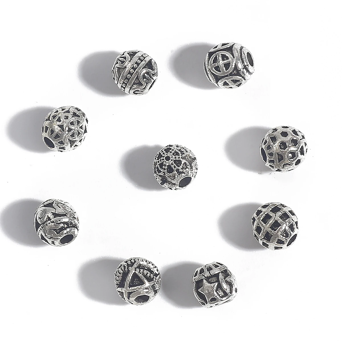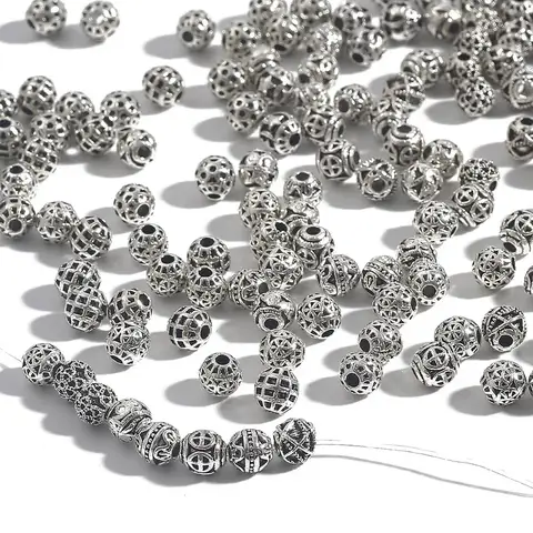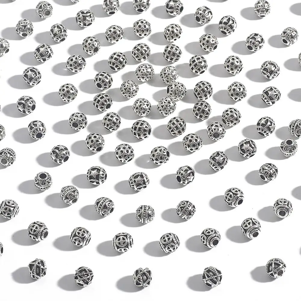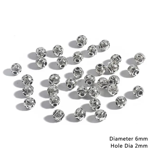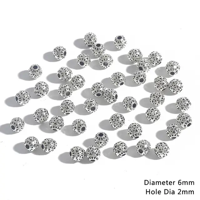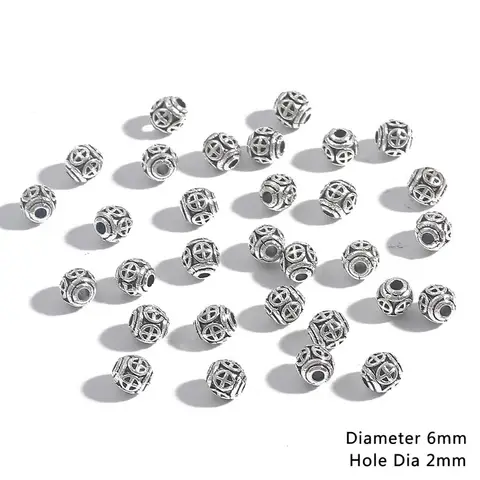 • 6mm Tibetan Antique Silver Color Hollow Ball Metal Beads Spacer Beads For Jewelry Making DIY Bracelet Nekclace