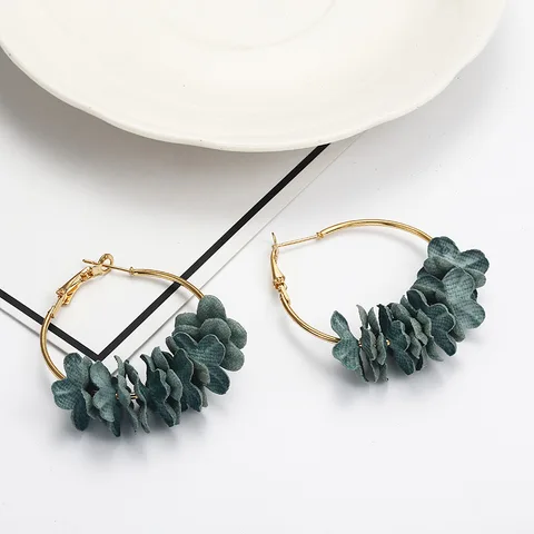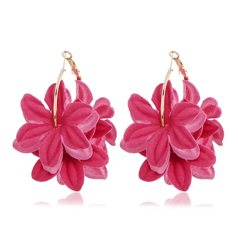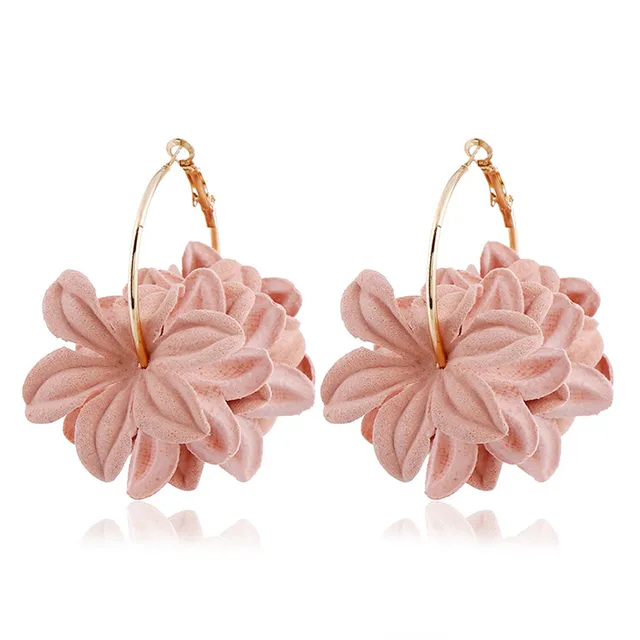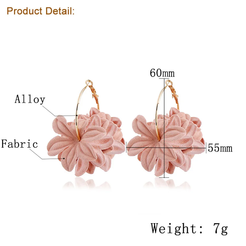 • Fashion Fabric Flower Drop Earrings For Women Statement Colorful Petal Circle Big Fancy Earring Jewelry