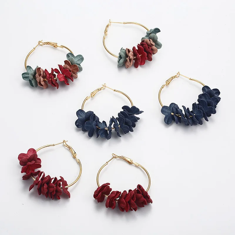 Fashion Fabric Flower Drop Earrings For Women Statement Colorful Petal Circle Big Fancy Earring Jewelry