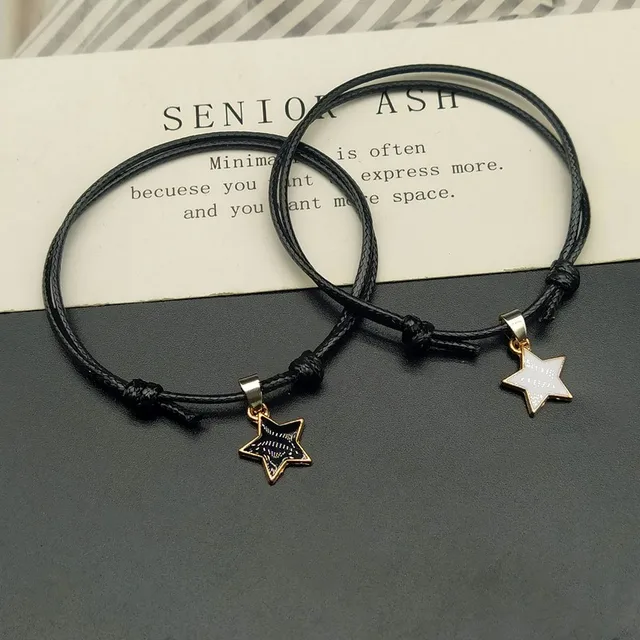 2 PCS/Set New Fashion Couple Bracelets BlacK White Rope Stars Bracelet for Women and Men Paired Bracelets Gifts for Lovers