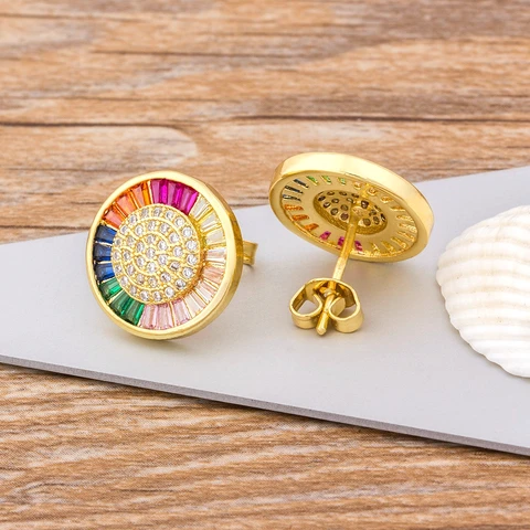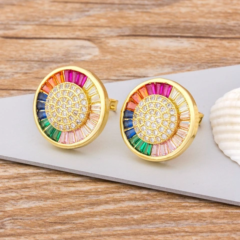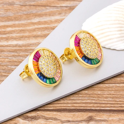 • Quality Delicate Copper Zircon Crystal Round Stud Earrings Rainbow Color Romantic Love Earrings For Women Girls Gift