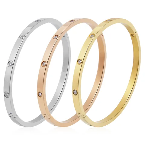 Lovers Bracelets Woman Bracelets Stainless Steel Bangles and Bangles Cubic Zirconia Golden Woman Jewelry Gifts