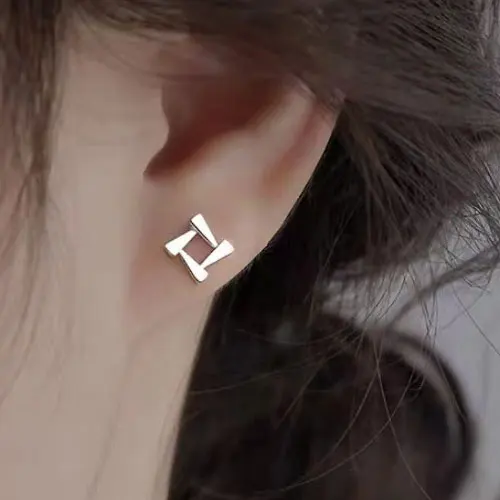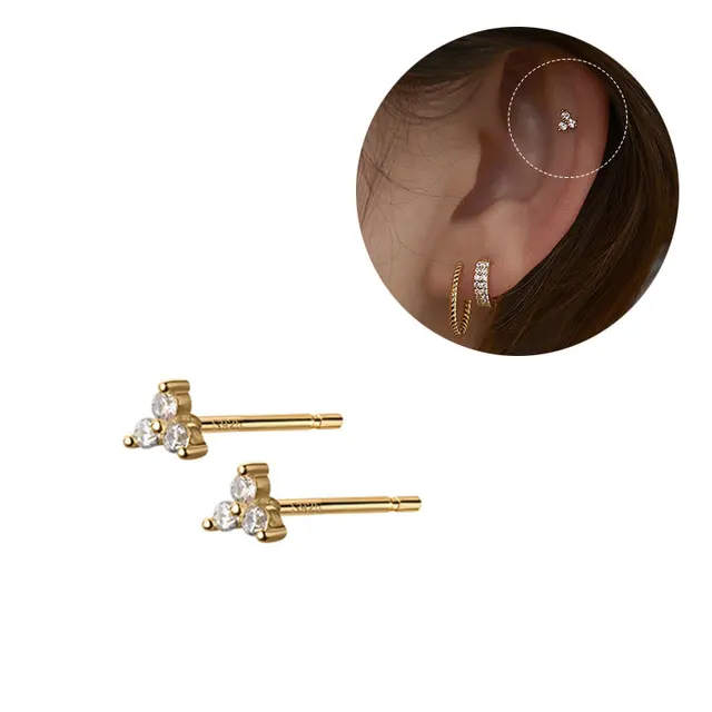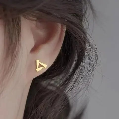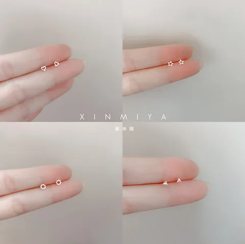 • Fashion Women's Minimalist Mini Geometric Studs Earrings Triangle Square Heart Star Zircon Small Earrings Party Jewelry
